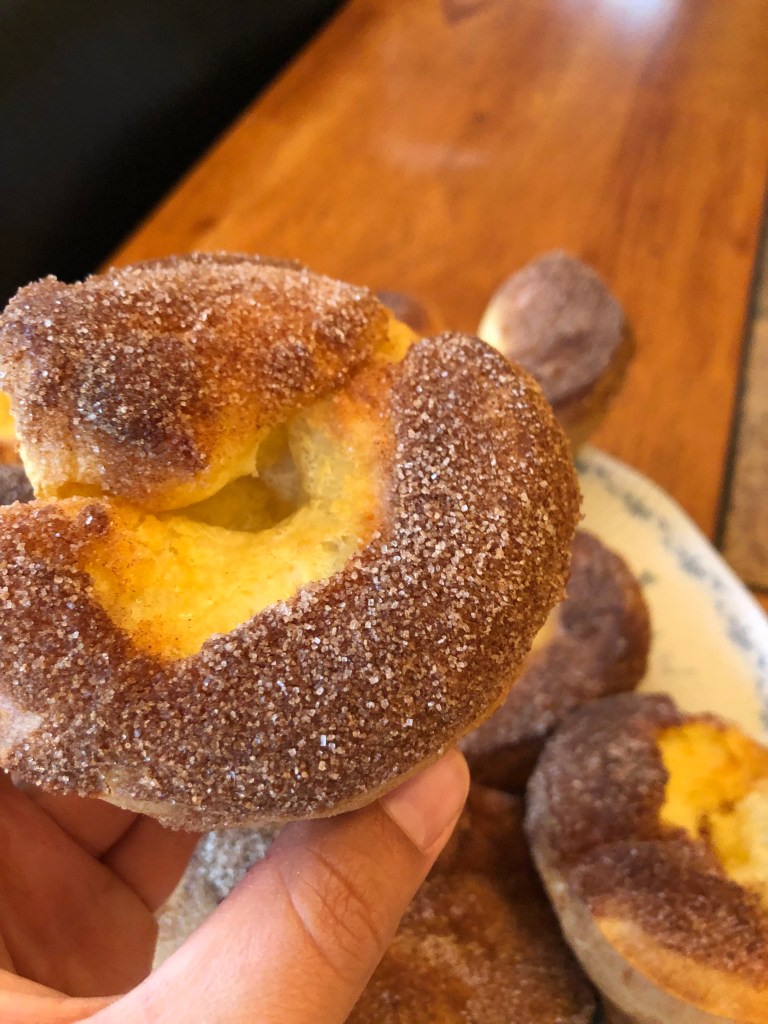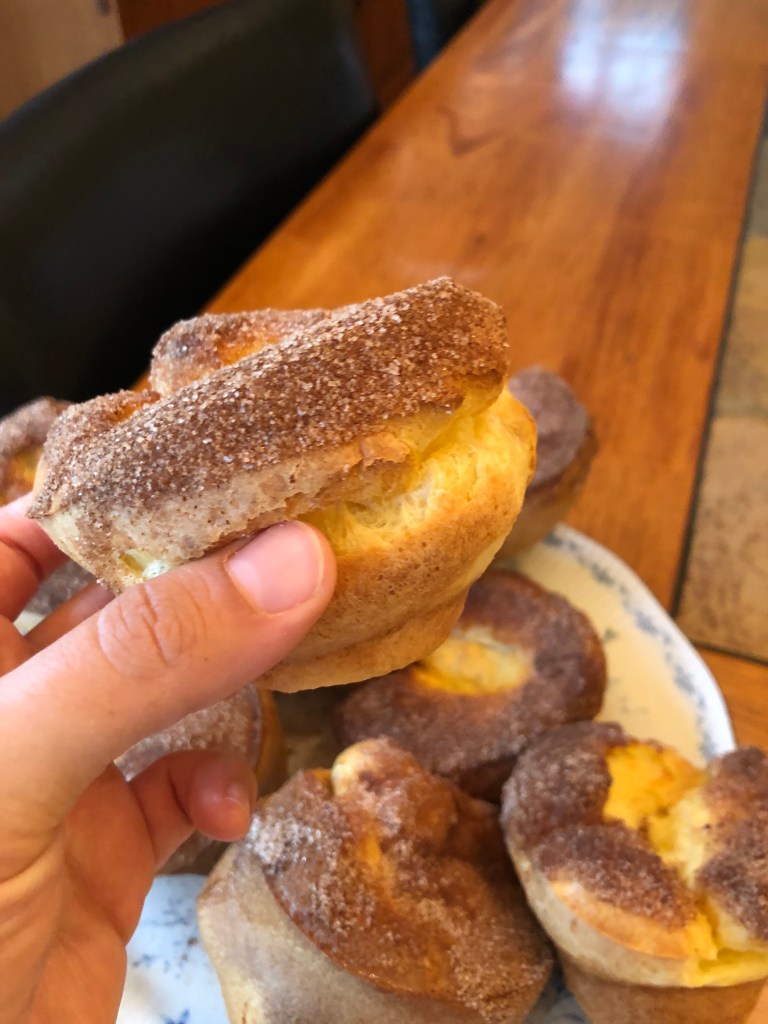 - Remove popovers from the tins and coat with butter then roll in cinnamon-sugar. Once topped, serve immediately or let cool and place into an airtight container. For best taste, eat the same day.