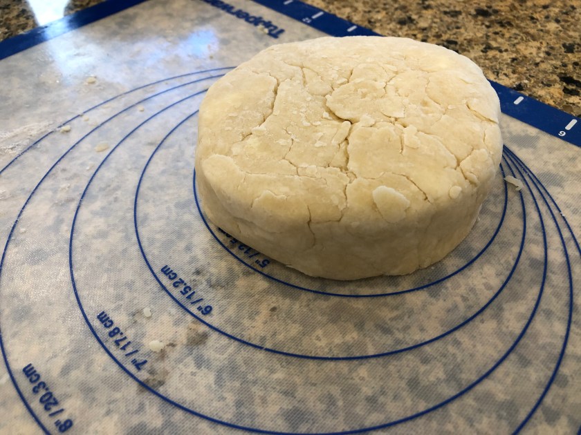 - Turn out the crumbly mass and pat together. Flatten into a disk, wrap in plastic, and chill in the refrigerator for at least 1 hour or up to 1 day.