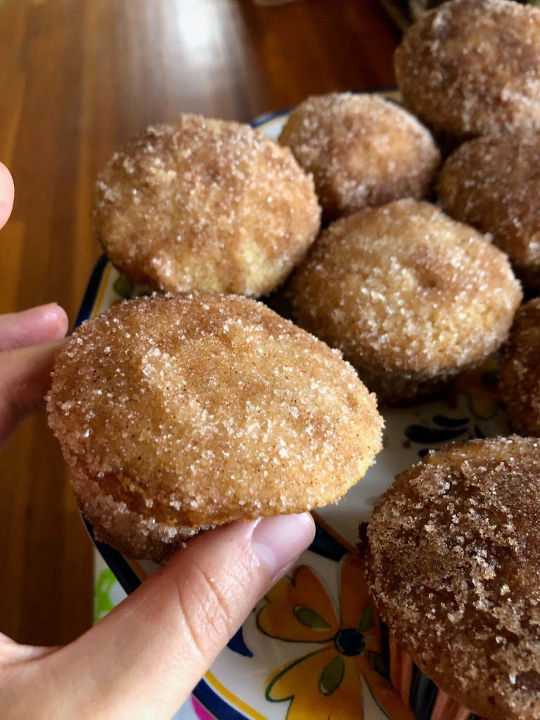 Wow these were amazing! I got this recipe from the New York Times Cooking app and had been wanting to make it for a while! I had some leftover apple cider from a trip to the orchard a few weeks ago and decided to give it a try! These were delicious! They are the same as the apple cider donuts traditionally sold by apple orchards but even better! I liked them more because I felt that they didn’t get soggy after a day or two of sitting around and they were a joy to eat! They had the same texture as a donut but without all the fat and grease from being deep-fried! The original recipe is for baked donuts but the only thing that makes them donuts is being baked in a donut pan. Because I am a college student and not a professional baker, I do not have a donut pan. However, I have multiple muffin pans that I put to great use as part of this recipe! It has been tasted and approved by my boyfriend so I feel very good about putting this recipe out for the world to see!