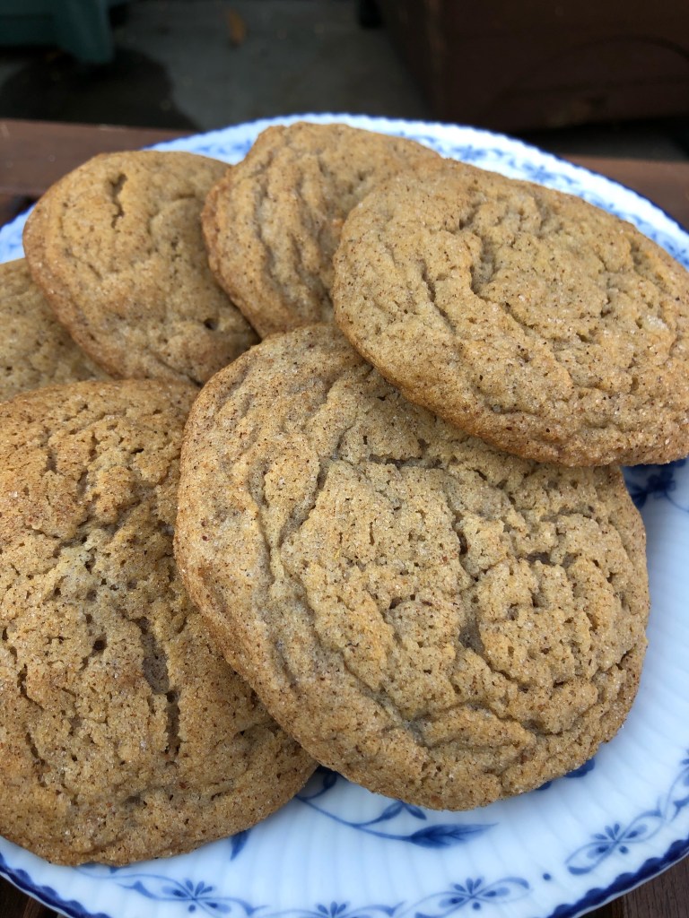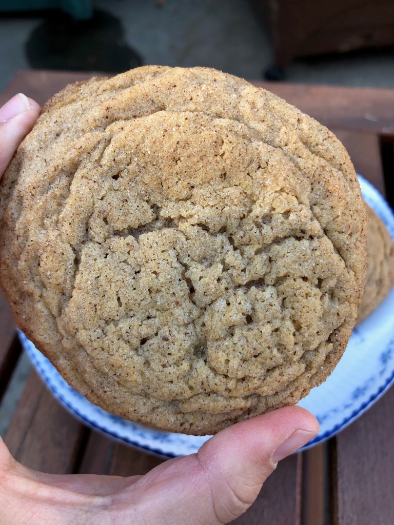 This recipe makes about twenty four cookies and the original recipe recommended doing 3 ounce dough balls for the cookies. I halved that amount to about 1.5 ounces per cookie and found that the smaller size works better for me. 3 ounce cookies would have been too big for my family and I but it may be just the right size for some! The true star of the recipe is the spices but we cannot neglect the hidden hero, cream of tartar. Cream of tartar is a byproduct from wine-making and it’s a chalky powder that winemakers will scrape from their barrels after they’ve removed the wine. Cream of tartar acts as an acid, balancing out the spreading tendency of the sugar and butter, and keeps the cookie together in the baking process. If a recipe calls for cream of tartar, if you don’t have any, go get some. It’s not worth it to try and substitute another acid like lemon juice, it just doesn’t work right. I am speaking from personal experience because I attempted to substitute lemon juice in several batches of snicker-doodles and they spread horrifically. I had to scrape the cookies off the baking tray and was very distraught. But we all fail during baking and I’m taking advantage of this never ending year to try and branch out in my baking despite the potential for failure. So I hope that you have some cream of tartar at home and can make these cookies for yourself and your family this holiday season! Happy baking!