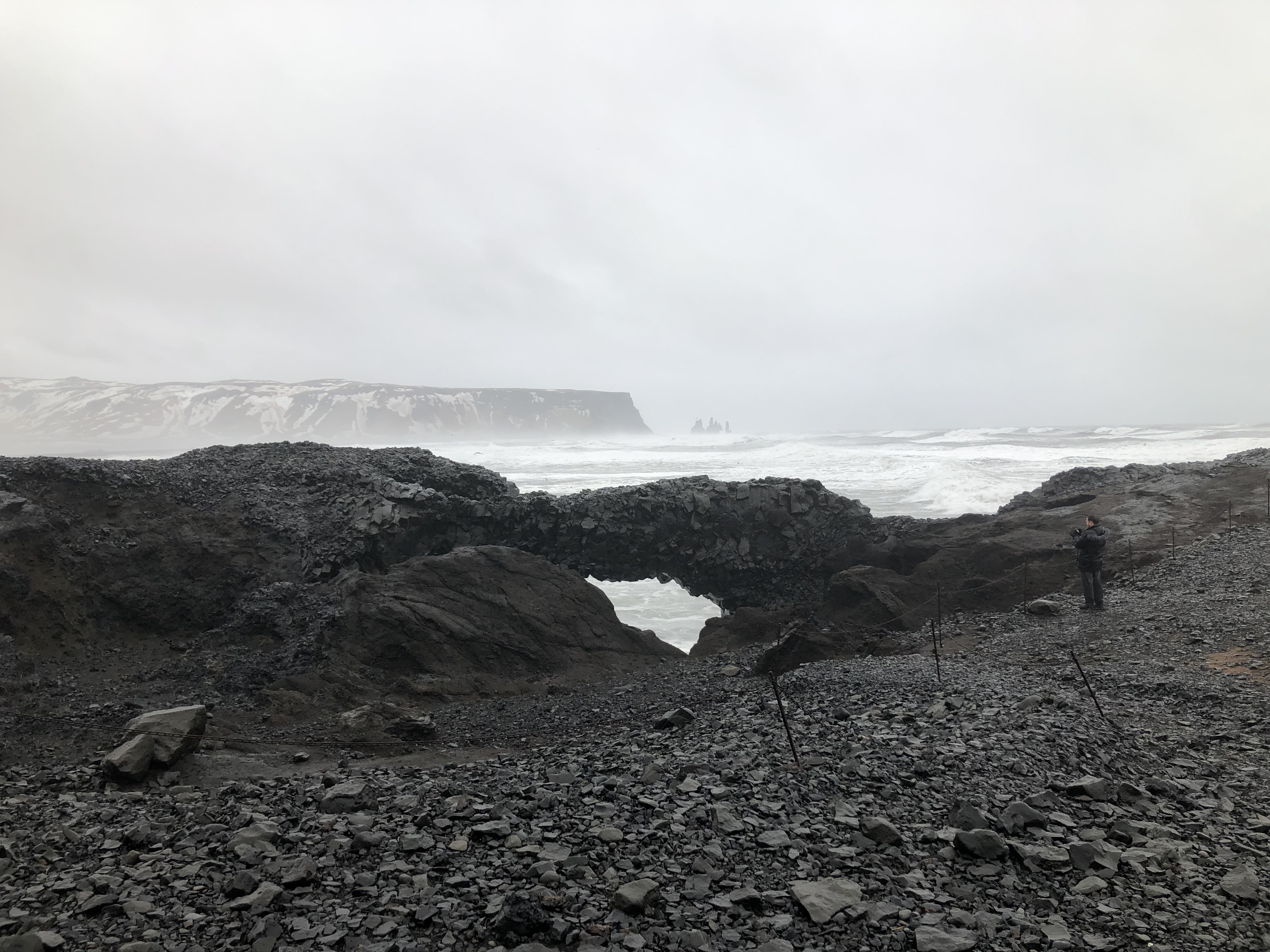 The next day was more relaxed. We ended up driving around a bit in the afternoon because of the high winds in the morning. It was shocking to both of us that from our cabin, we could see people in tiny cars and tour buses just zooming down the road at upwards of 80 kilometers with really strong winds. I guess the Icelandic people don’t mind as much but we were worried about being flipped over on the road!! We left the cabin after lunch and headed to Skógafoss, a nearby waterfall. From Skógafoss, we drove to Dyrhólaey which overlooked the black sand beaches and the very fierce ocean. From there, we drove back to Reynisfjara or the black sand beach. It was an otherworldly site and I think one of my favorite places we visited. Both J and I stood transfixed just looking at the waves pounding the volcanic beach. It felt like we had left earth and we wondered what could have possibly made people think that settling in Iceland was a good idea. From there, we just drove for a bit past Vík and once I was too cold to stand being in the car anymore, we drove back to Vík and got soup for dinner from The Soup Company. 10/10 would recommend the lava soup and if you stay in the restaurant to eat, you can get as many soup refills as you want which is nifty. From there, we went back to our cabin for the night.
